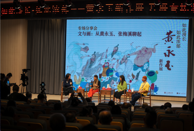 北京画院院长吴洪亮在开幕活动专场分享会中介绍本次展览主题“如此漫长,如此浓郁”的由来:“我们在北京做展览的时候,一直在想用什么方式来呈现我们对黄永玉先生的认识,最后找到了黄永玉先生的一本书——《太阳下的风景》,在同名的文章的后面两段读到这八个字:如此漫长,如此浓郁。无论是沈从文还是黄永玉,他们对于自己的人生和对于整个中国的文化都给予了丰厚的贡献。这里,让我们能从“漫长”中去找到真意,能从“浓郁”中感悟到这个世界到底还有哪些撩拨我们内心的部分。”