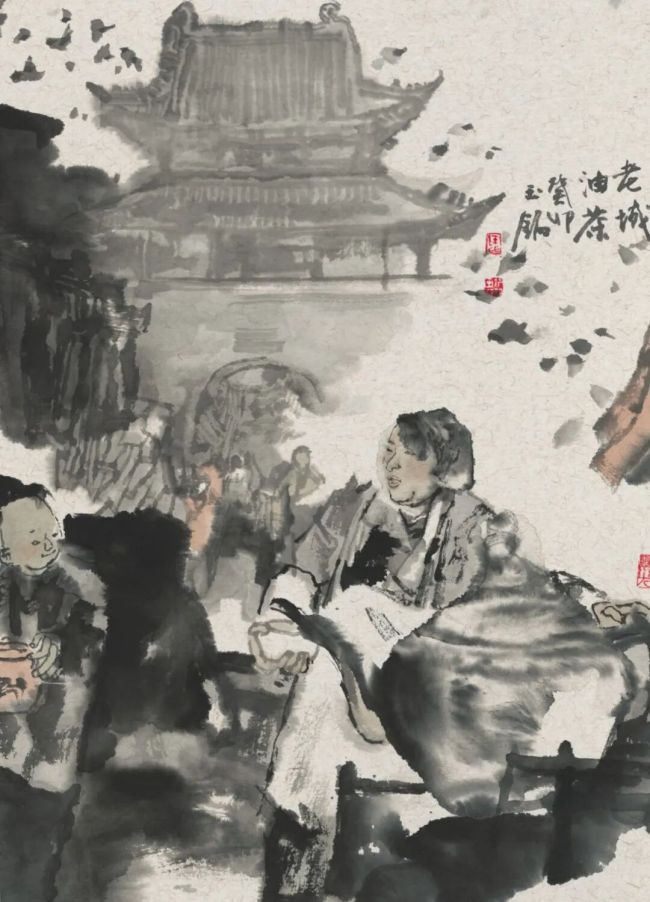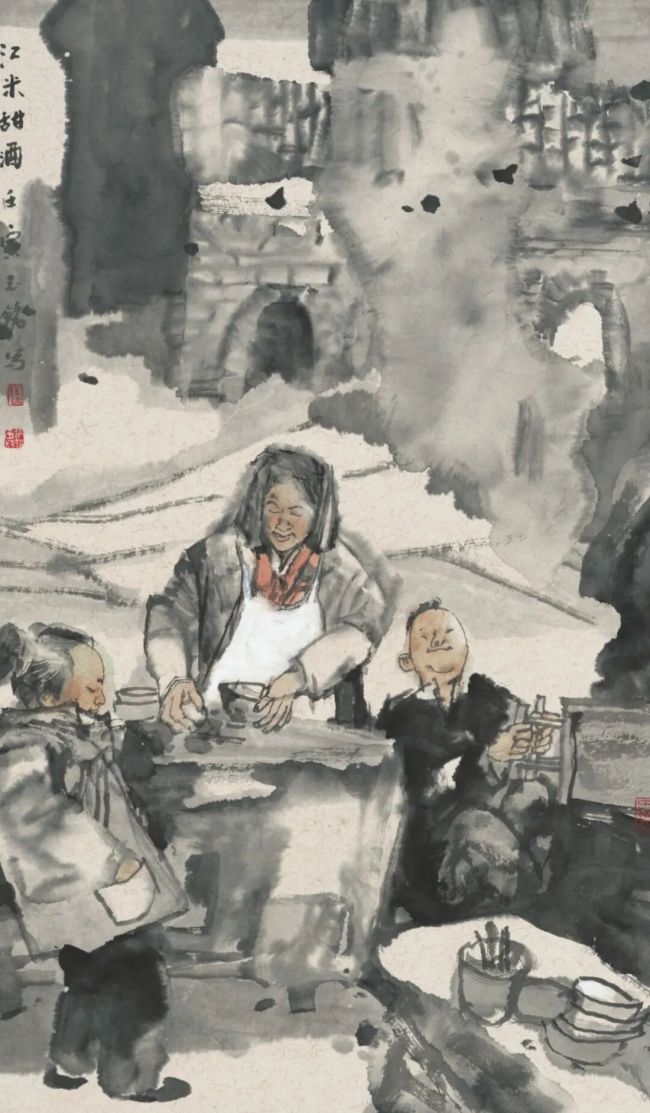 陈钰铭是中国当代水墨人物画领军人物、一级美术师、中国美协中国画艺委会副主任,这位土生土长的洛阳人,退休后屡屡回到家乡小住,只为重温童年小吃的滋味、聆听地道的洛阳乡音。此次展出的近六十幅“瀍水人·瀍水情”系列组画,正是他重拾童年记忆、追记乡土民情的精品力作。《东关龙》的灵动热闹、《老城油茶》的烟火气、《江米甜酒》的醇厚温润……每一幅作品都以细腻笔墨讲述着孩提时代的人文趣事,铺展开行将消逝的河洛民俗画卷。
