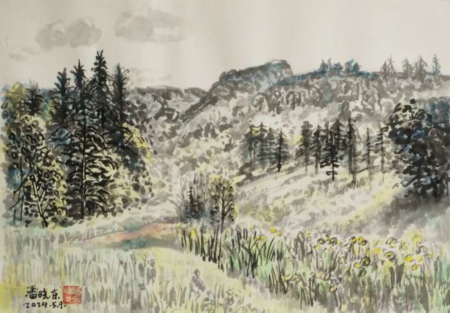 2024、5、9下午潘晓东《秦岭写生·花园沟深处》纸本水墨28cm×39cm