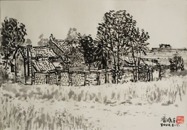 2024、5、13下午潘晓东《秦岭写生·新居》纸本水墨28cm×39cm