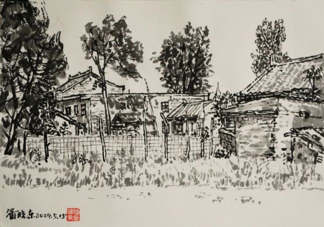 2024、5、15上午潘晓东《秦岭写生·殿镇村1》2024年纸本水墨28cm×39cm