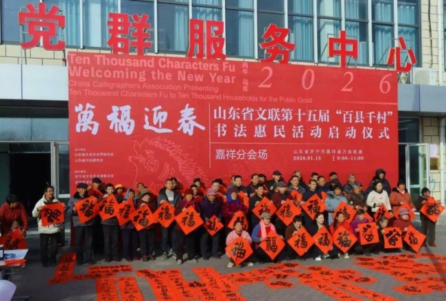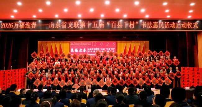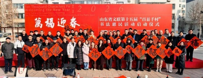 1月15日,“万福迎春——2026(丙午)马年中国书法家协会送万福进万家公益活动”启动仪式在山东曲阜万仞宫墙前广场举行,“万福迎春——山东省文联第十五届‘百县千村’书法惠民活动”在全省16市及所属区市县同步启动。