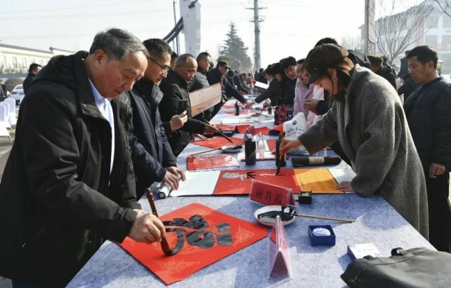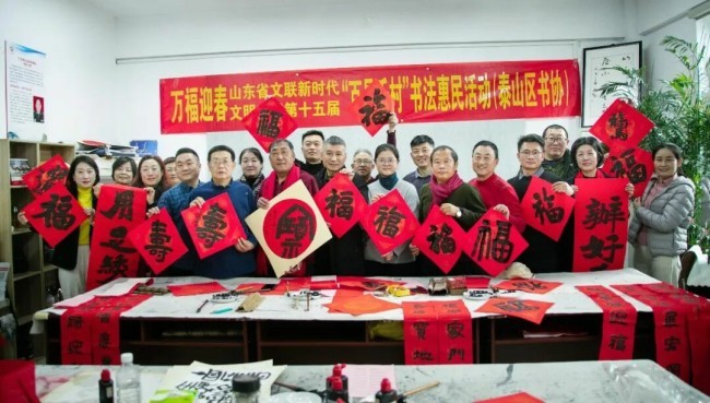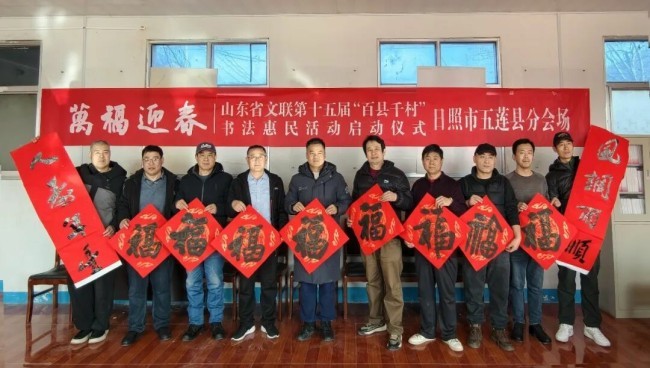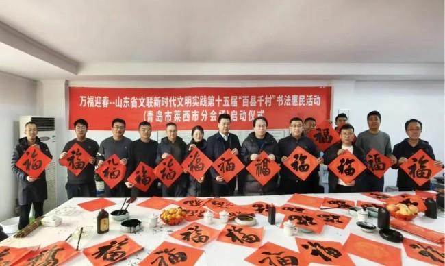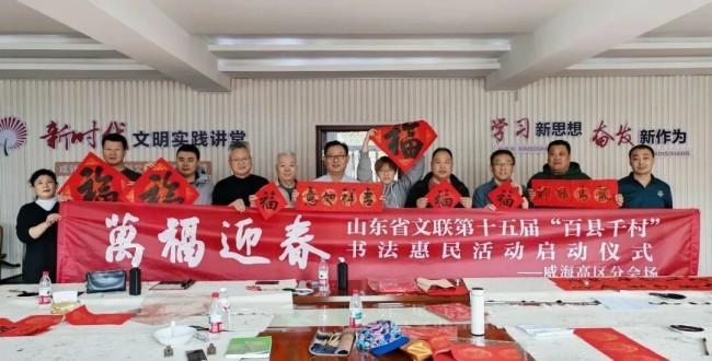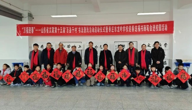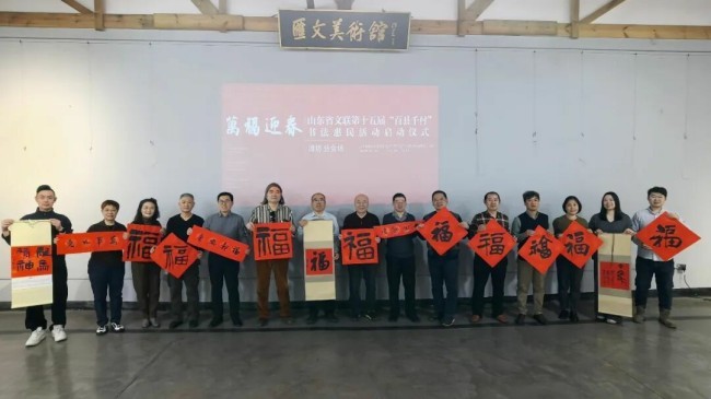 在山东曲阜万仞宫墙前广场,中国书协主席孙晓云,山东省委宣传部副部长、省电影局局长、一级巡视员程守田,山东省文联党组书记、副主席何思清,中国书协分党组成员、一级巡视员柳斌,中国书协副主席、山东省书协名誉主席顾亚龙,山东省文联党组成员、副主席马述兴,中国书协理事、山东省文联副主席、省书协主席王瑞,济宁市委常委、宣传部部长董冰,山东省委宣传部文艺处二级调研员蒯海军,山东省文联办公室主任马宗前,济宁市文联党组书记、主席刁允强,曲阜市委书记崔加清,书法家代表吴震启、郑晓华、王学岭、施恩波、颜奕端、杨科云、龙开胜、解小青、谢少承、董倚桥、程志宏、蒋乐志、逄春伟、郝晓明、杨国栋、陈培站、王道雨、张作昌、谢长伟、郑志群、王超、张会学、刘磊、杜庆龙、高卫兵、赵依房、韩益、郝亚同、宋秉民、朱本群、石云之、李文彬、孔卫、孔佑强、王燕、王洋,济宁市、曲阜市宣传文化系统有关负责同志,以及济宁市优秀青少年书法作者,曲阜市先模人物、优秀党员和高校师生代表、文艺志愿者等500余人参加了启动仪式。40名书法家与10名优秀青少年书法作者共同挥毫泼墨,为群众书写春联和“福”字两千余件。