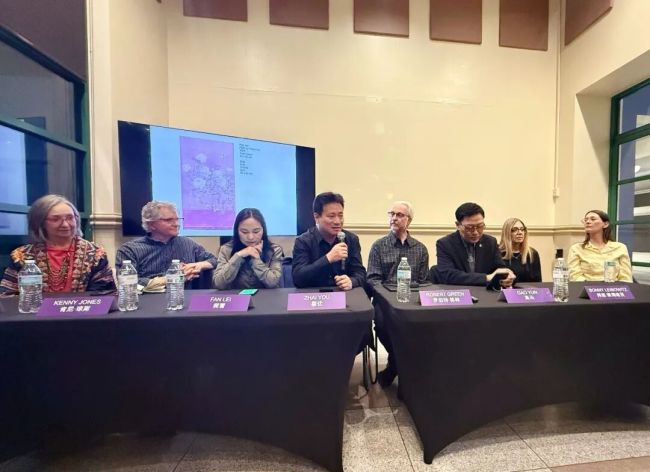 对话现场气氛热烈,观众围绕“跨文化创作如何保持本土特色”“笔墨传统与当代艺术融合”“中美艺术教育差异互补”等问题踊跃发问。针对“如何避免文化符号浅表化表达”,高云回应:“避免文化符号浅表化,关键在于深耕本土文化肌理,真正理解符号背后的精神内核,再以当代艺术语言进行转译,而非简单挪用拼接。”翟优补充:“真正的文化交流需深入精神内核,而非挪用符号,唯有扎根传统、尊重对方,才能实现交融共生。”樊蕾则建议青年艺术家:“深耕本土文化根基,以开放心态吸纳世界优秀成果,在传承中创新、借鉴中突破。”