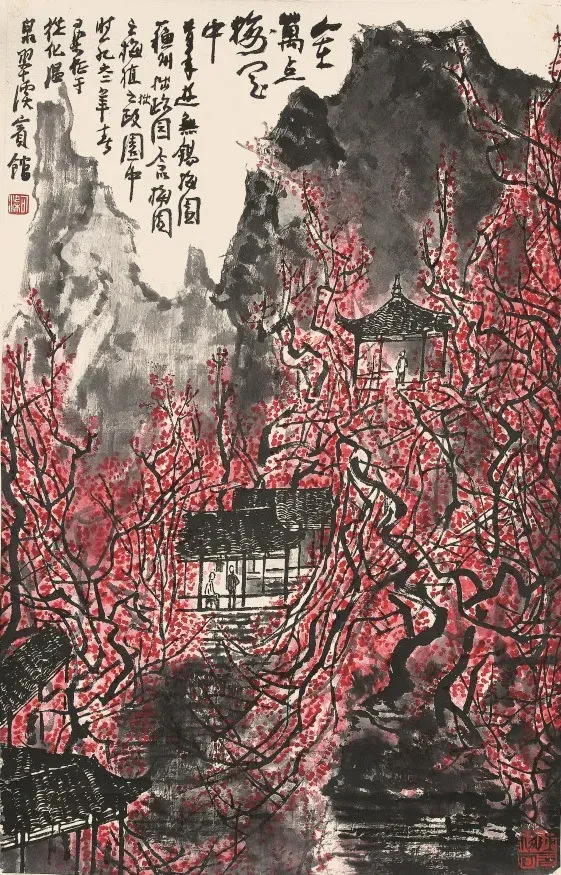 李可染《人在万点梅花中》68×46cm纸本水墨1961年