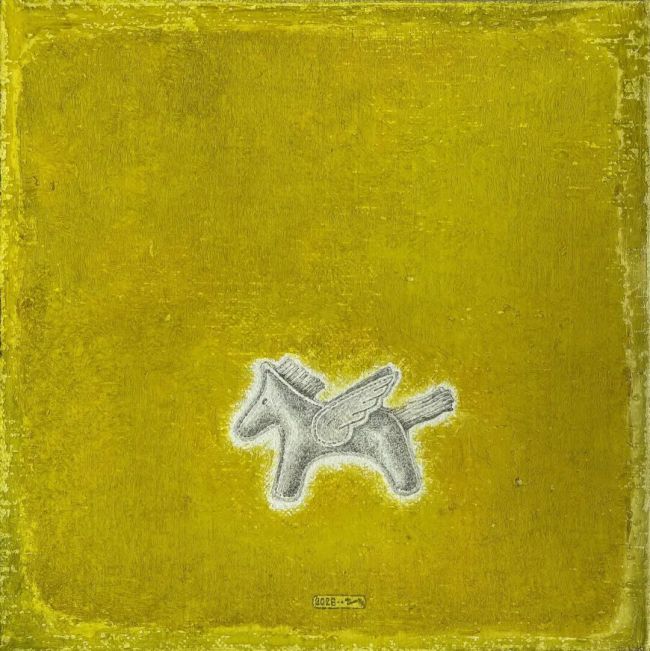 在画家的笔墨语言里,马早已超越了动物本身的意象,成为一种精神的载体。那奋蹄前行的骏马,是对行而不辍的执着追求,是对寸进之功的笃定坚守。一笔一画,皆是画家对艺术之路的体悟——艺途如驰道,唯有俯身耕耘,方能步步坚实。没有捷径可寻,正如骏马奔驰从无虚浮之步,每一道笔触的落下,都是匠心与汗水的沉淀。