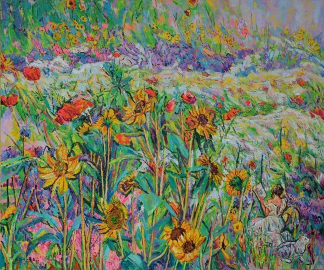 独自步入其中,静立这些油画作品前,凝神细看,那些热烈而浓艳的色彩,像被骤然惊醒的精灵,在雨后沉静的空气里,突然迸发出来,喧腾着,跳跃着,燃烧着——而其中一朵朵花,正悄悄向着我心灵深处,无声无息地绽放。