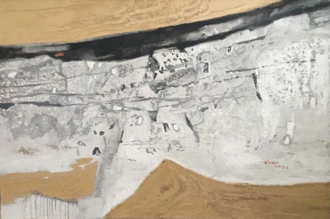 值得注意的是,陈卫国始终坚守绘画的“现场性”本质。无论是敦煌石窟的晨光、黄河岸边的暮色,还是长白山的雾霭,他都坚持在现场完成初稿,捕捉最鲜活的光影变化与情感触动。后续的材料叠加与技法处理,均以现场感受为根基,确保作品不脱离对自然的敬畏与对真实的尊重,这种创作态度使其作品既保有当代性,又蕴含质朴的生命力。