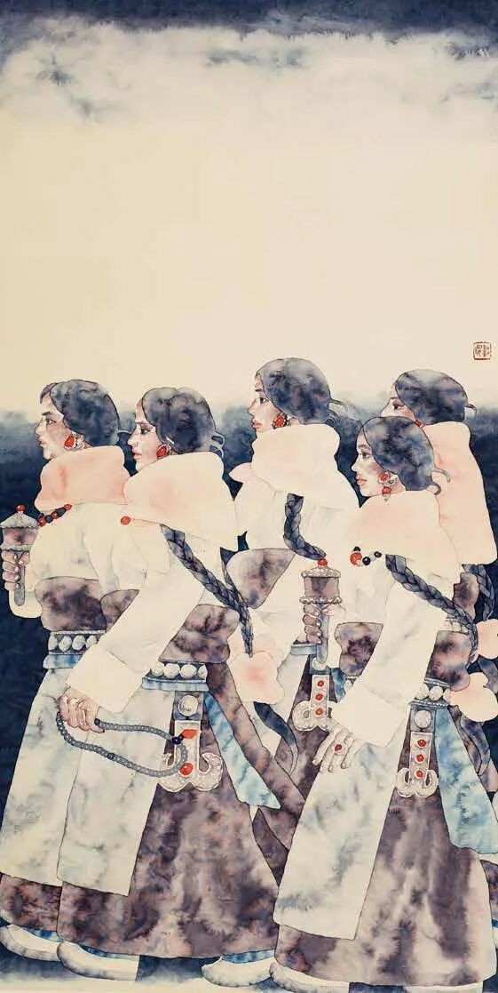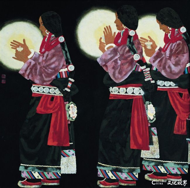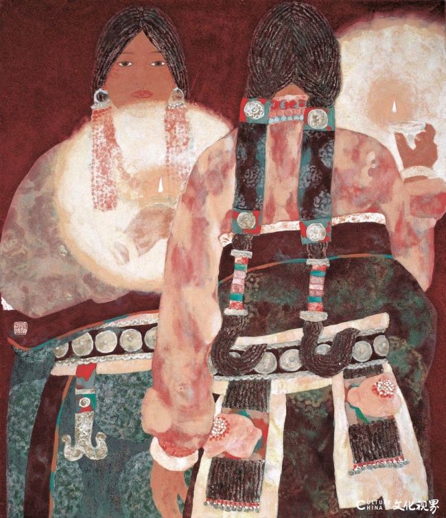1982年的芒康之行成为潘缨艺术认知的重要转折点。她用整个下午观察藏族妇女织布,在简单重复的劳作中捕捉到修炼而成的完美,这份顿悟此后贯穿其艺术生涯。多年后,在画室与家庭间穿梭的她,愈发深刻地明白艺术与生活本是同一架织机的经纬,相互交织,不可分割。
