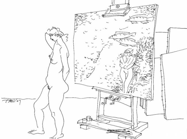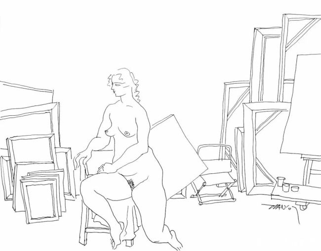 在这些作品里,速写早已超越“记录”的浅层意义,成为一种叩问存在的方式。线条间藏着创作者对生命、时间与存在的持续思考,那些融入画室场景的速写,将模特与画架、画布相融,不仅展现了“从观察到创作”的艺术过程,更暗合了“人栖居于天地”的哲学意蕴。模特的姿态在画室空间里舒展,生命的痕迹在线条中留存,这与“艺术是让存在显现的方式”不谋而合。田卫平以线条为桥,连接起个体生命与普遍人性的关系,让观者在动态与线条的共鸣中,看见自己生命里的某一刻回响。