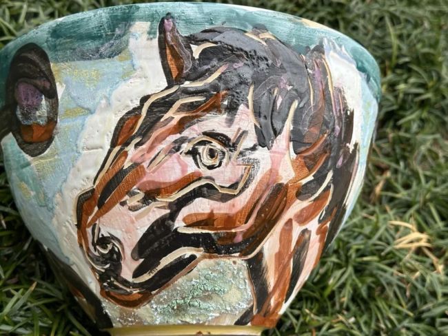这次展览准备了几件自己近期制作的陶瓷作品,一些彩绘的瓶瓶罐罐,希望得到大家的批评指正。我希望自己的艺术探索能够做得更好一点,所以一直羞于展示,老爸总是鼓励我,我觉得自己的作品还很不成熟,希望通过这次的展览,继续学习继续提升自己。