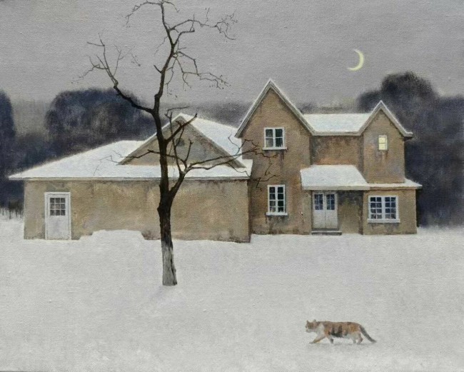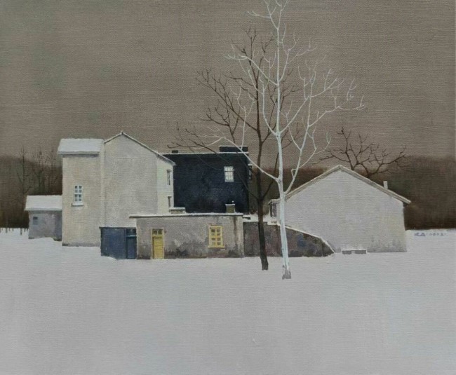 在当代艺术多元碰撞的语境中,沈磊的创作更像是一场向内的修行。当不少艺术家执着于用夸张的形式、尖锐的表达吸引目光时,他却选择在寂静的画布上,打磨属于自己的艺术语言。沈磊用作品告诉我们,真正的艺术从不必喧嚣张扬,只需以沉静的力量抵达人心,在素净的表达里照见生命本真。站在他的作品前,我们仿佛能听见雪落的轻响,能触摸到屋墙的温度,能感受到枯木的呼吸。他以画笔编织出一个关于故乡与远方、孤独与温暖的梦境,让我们在纷繁的世界里,拥有了一片可以安放灵魂的秘境。