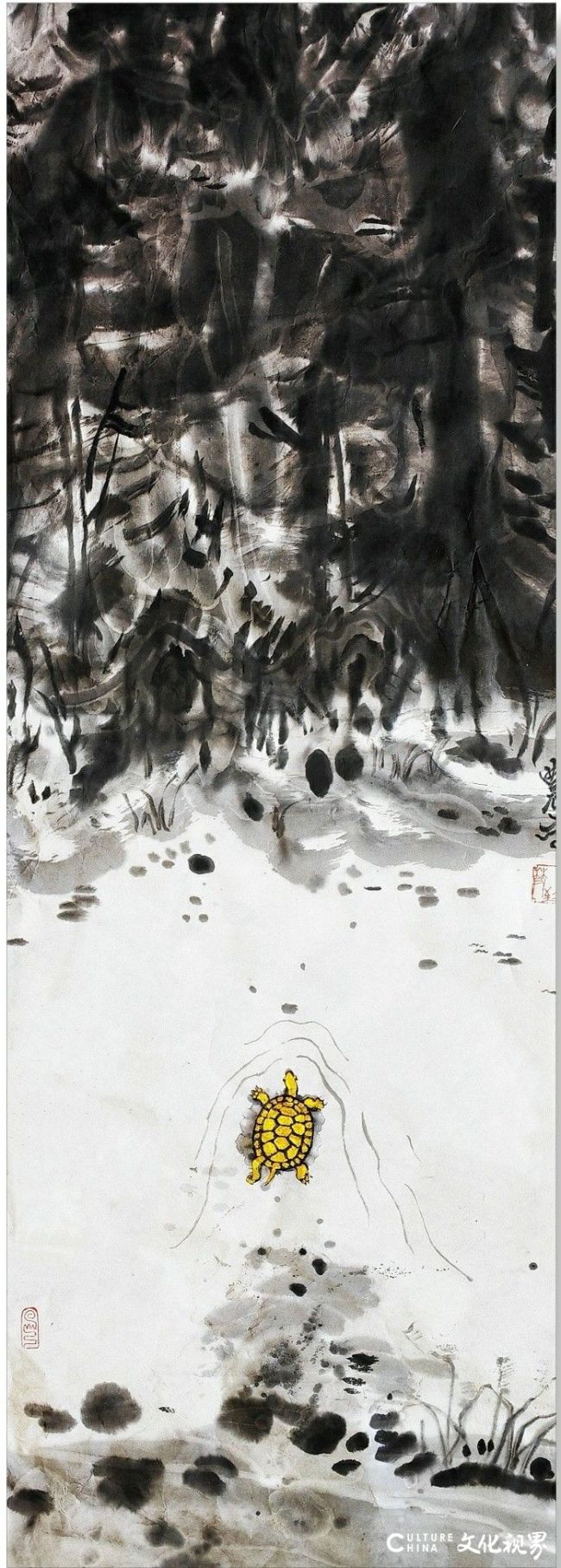 油彩与墨韵共生,笔锋与肌理交融,顾致农以油画家的独特视角,在水墨与书法的疆域里踏出了一条跨界探索的幽径。他没有将油画的写实肌理与水墨的写意精神割裂对立,而是让二者在画布上相互浸润、彼此成就,如同风与云的邂逅,自然生长出兼具东方气韵与现代质感的艺术语言。那些流动的墨色并非简单的渲染,而是承载着书法笔意的筋骨,每一道笔触都暗含着提按转折的韵律,既有油画颜料堆积的厚重,又有水墨晕染的空灵,让观者在虚实之间感受到艺术表达的无限可能。