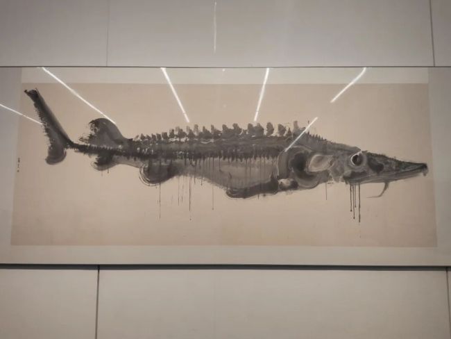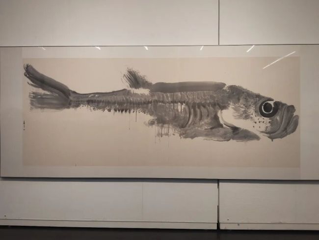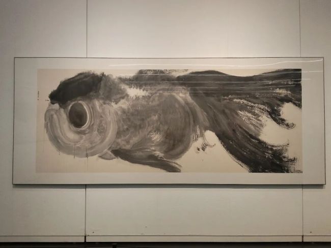 自1月18日“周京新:有鱼”特展在郑州美术馆启幕以来,36幅丈二巨幅水墨作品便以震撼人心的视觉张力与独树一帜的艺术语言,吸引了众多观众慕名而来。展览现场未设多余展板隔断,巨大的山麻纸画作直接铺陈于墙面,游鱼在黑白灰的墨色渐变中舒展身姿,既具雕塑般的立体体量感,又不失笔墨的书写性与灵动气韵,让观众仿佛置身一片澄澈通透的“鱼之秘境”。