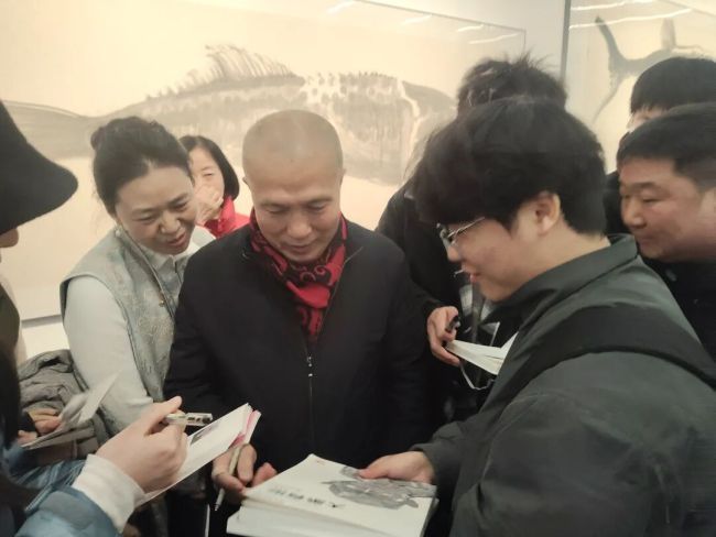陈文利在对话中表示,周京新先生以鱼为媒,既扎根传统笔墨精神,又大胆突破传统表现形式,将水墨艺术与雕塑、现代设计等元素相融合,赋予了传统题材全新的当代视觉张力。“他的创作告诉我们,传统不是束缚创新的枷锁,而是滋养创新的土壤。只有真正理解传统、敬畏传统,才能在当代语境下实现有效的创新突破。”陈文利说道,周京新先生的艺术探索为中原水墨创作提供了重要启示,也为河南美术事业的发展注入了新的思想动力。对谈结束后,现场观众踊跃提问,周京新一一耐心解答,让在场者受益匪浅。