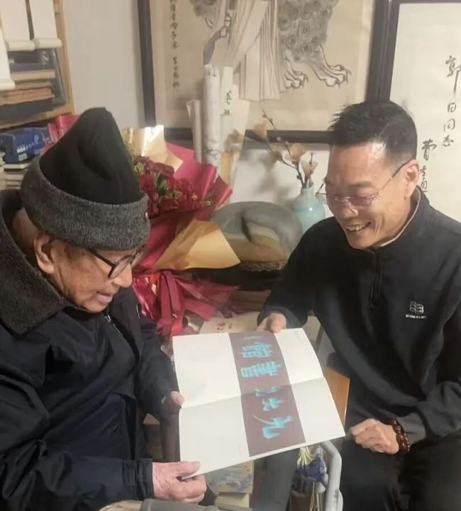 恍恍兮,不觉又是一年。2025年12月1日,时隔一年后,我与广州沙面艺术中心主任、知名美术策展人胡旭先生在合肥再次拜访了这位百岁老人——当代著名学者、美学家、作家、书画家郭因先生。