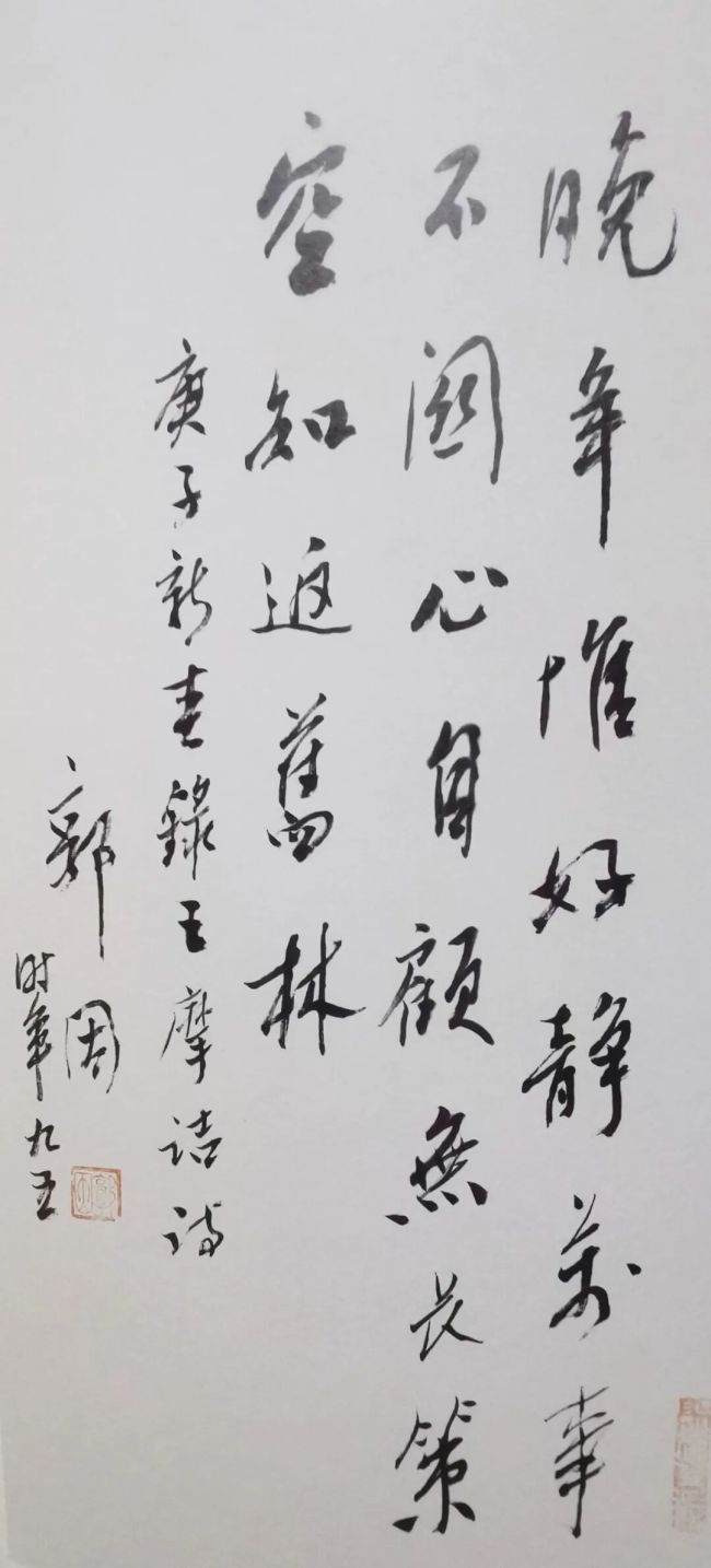 郭老之风,即得南宗逸丽温润之韵,又一洗其面面俱到的姿媚粉泽之态。所以其行草书碑帖交融,那份简洁与高古不时给人以仙袂飘拂之感。此或许就是古人常说的“正大气象”与文人风骨吧!