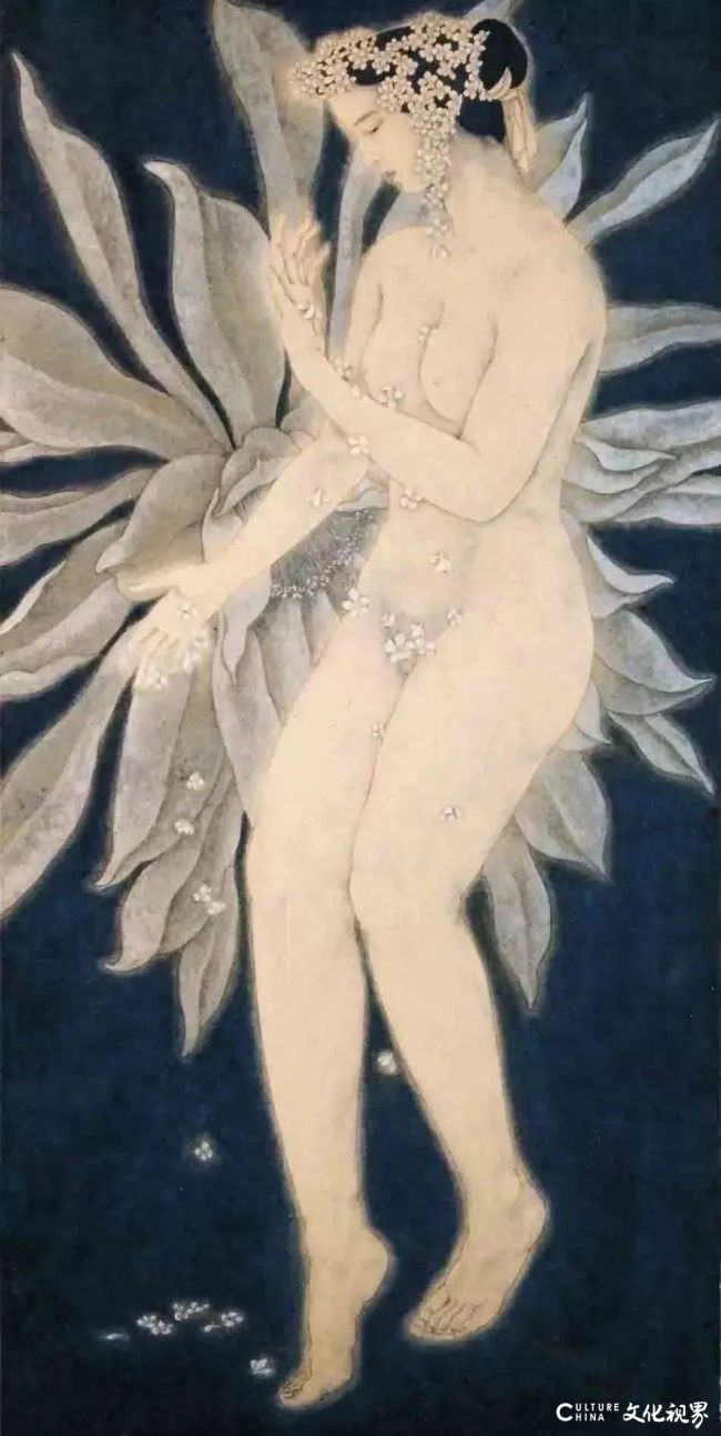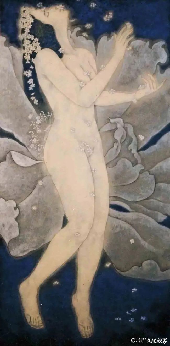 他以“一口气”生化了由文化理念、审美意识而寓寄作品的诗情画意,以音乐韵律移情于绘画元素,让线条的抑扬顿挫里淌着生命的节奏。你看那些裹着繁花与凤纹的身影,没有被程式化的仪态缚住,赤足踩着泥土与花瓣的边界,抬手时是风的形状,垂眸时是植物的静。这是嵩山的刚与淮河的柔织就的骨血——线条圆劲如黄河的波,敷色清隽似大别山的雾,刚柔相济里,是人与天地的不相离,是日常烟火里的舒展与自在。