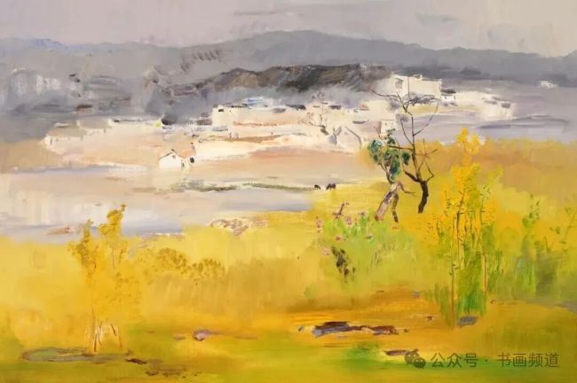 在山水主题的油画创作中,他并未拘泥于再现自然的表象,而是以中国山水画“可行、可望、可游、可居”的观照方式,构建流动而开放的视觉结构。画面中,色彩的铺陈与光影的层叠并非单纯的形式实验,而是服务于整体气韵的生成,使油画这一西方媒介焕发出内敛、含蓄而悠远的东方审美意境。正是在这种“以中驭西”的探索中,他不断拓展着油画民族化的表达边界。