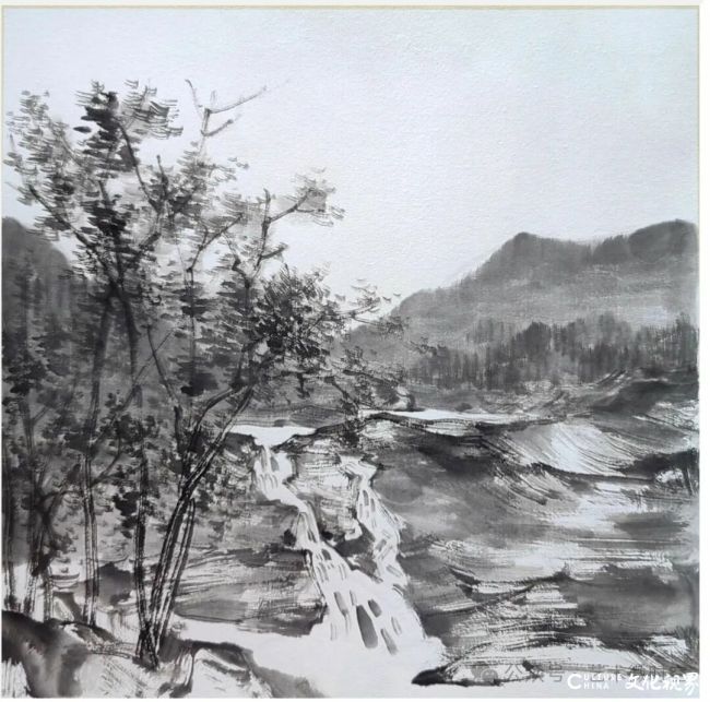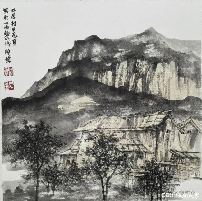 村居写生题材中,陈琳的笔墨更见质朴温度。他以枯笔皴擦出山石硬朗质感,老枝斜出间,草屋隐于林麓,墨色的浓淡干湿里,似能听见山风穿林的簌簌声。南方村居写生作品,以细密线条勾勒茅檐肌理,草木的婆娑、木构的朴拙,在黑白灰的层次里尽显烟火气,那份对在地生活的细腻体察,让水墨跳出“逸笔草草”的文人惯性,多了份人间暖意。