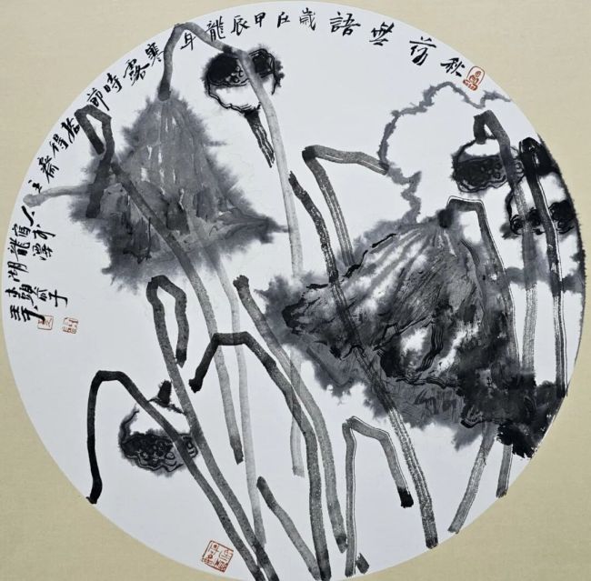 水墨写生:《秋荷无语团扇》45x45cm