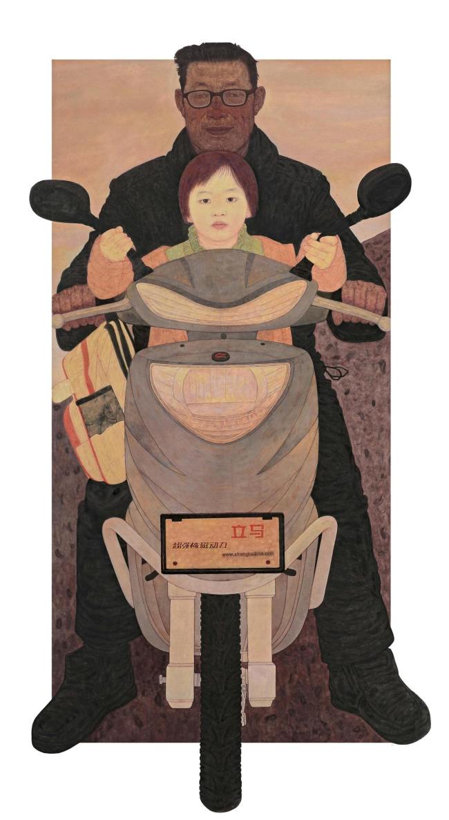 李传真《放学》213cm×106cm纸本设色2016年
