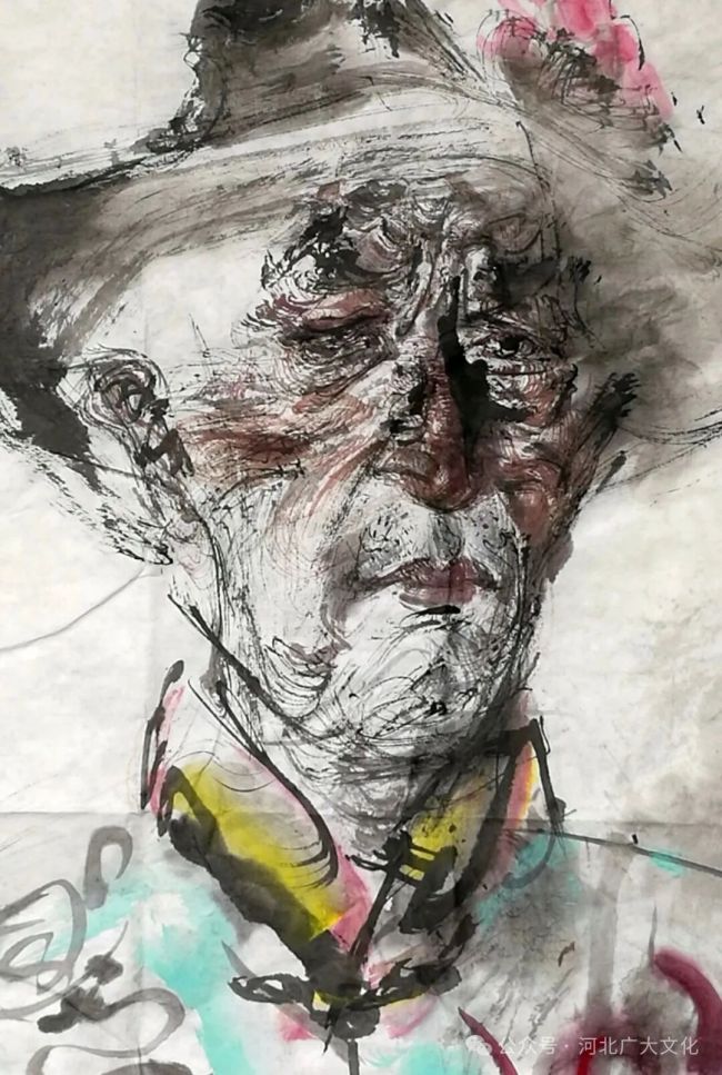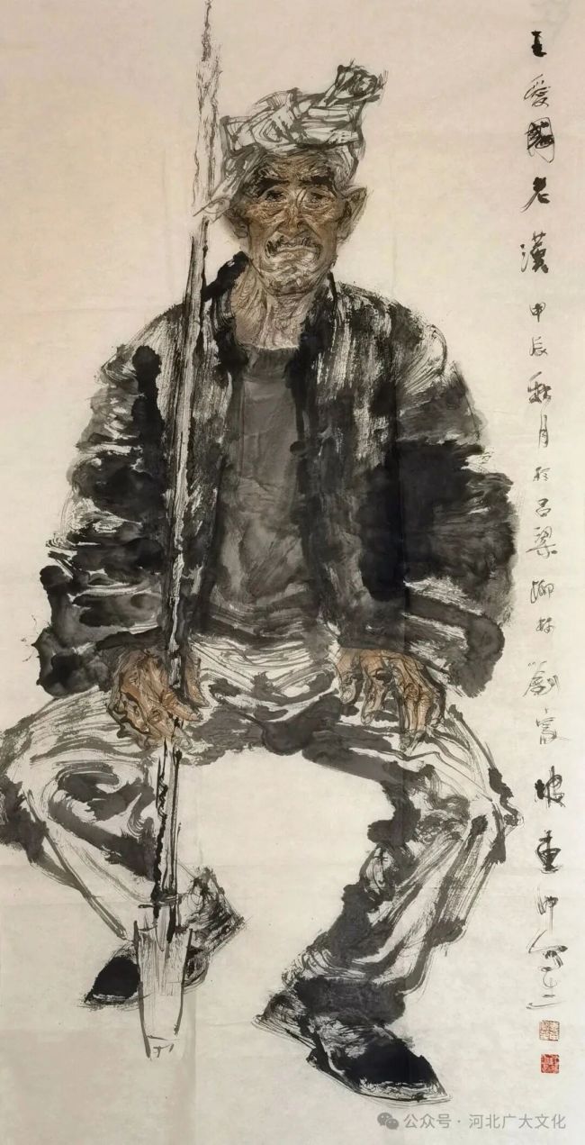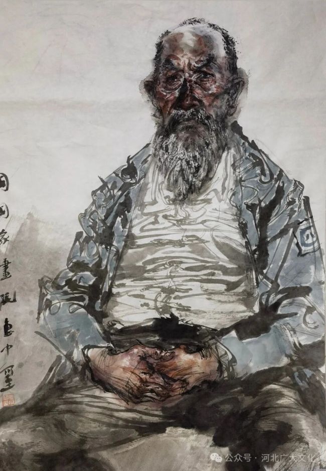 观任惠中的水墨人物画,最先触动人的,是他笔墨间浑然天成的气韵。他深谙水墨艺术的核心要义,不刻意追求工细的描摹,也不沉溺于炫技的泼洒,而是将笔、墨、水三者相融相生,达到了随性而发、落笔成趣的境界。他的用笔,苍劲中带着温润,刚健里藏着婉转,中锋行笔如锥画沙,力透纸背,侧锋扫抹又似云卷云舒,洒脱不羁,线条不再是勾勒轮廓的工具,而是有了呼吸、有了筋骨的生命载体。线条的疾缓、轻重、枯润,皆随人物的神态、气质自然流转,或凝练如铁,勾勒出骨骼的硬朗;或柔婉如丝,晕染出肌肤的温润,笔笔见力,笔笔含情,让线条本身就具备了独立的审美意趣,也让人物的形体结构,在线条的穿插与交织中,立得住、站得稳,既有中国画的笔墨法度,又有鲜活的造型张力。