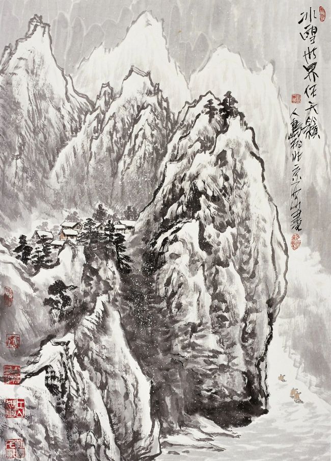 《冰雪世界任天籁》,刘人岛中国画作品。(作者供图)