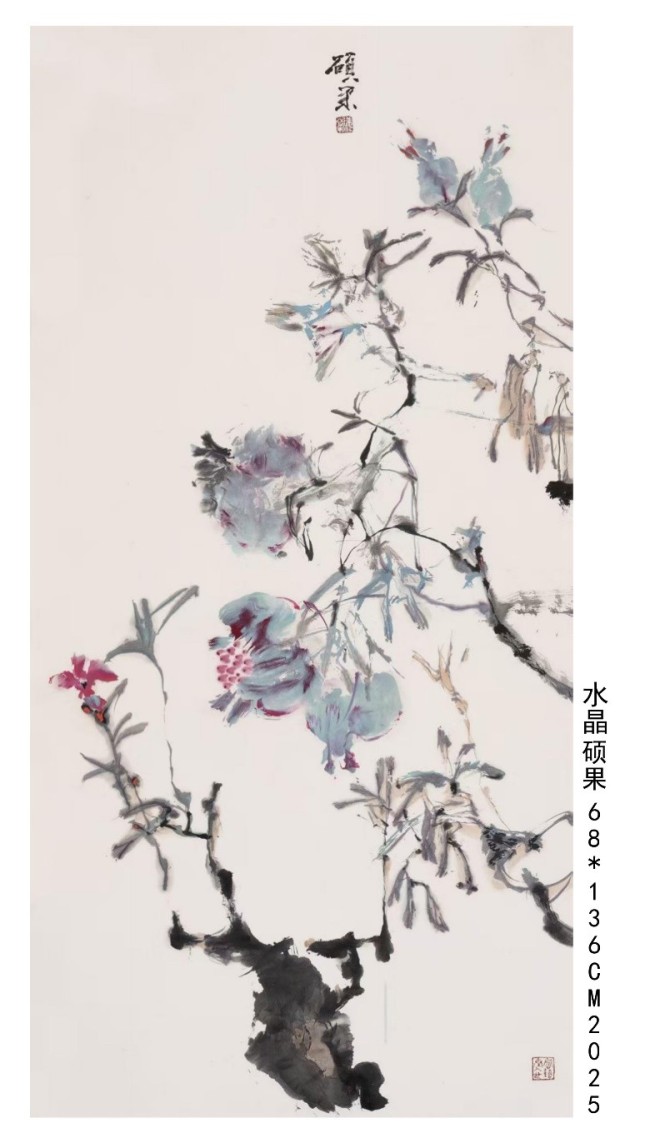 艺术家姜怡翔的写意并非逸笔草草的随意挥洒,而是理性思考的结果。他在创作中反复推敲笔墨、构图、意境,注重笔到之处,意之所在,如《密处也寻香》经过多次写生与修改,才形成密处见韵、寻香见意的效果。这种理性写意的方式,既保留传统写意的精神内涵,又融入学院派的研究方法,为当代写意花鸟画的个性发展提供感性与理性平衡的路径。