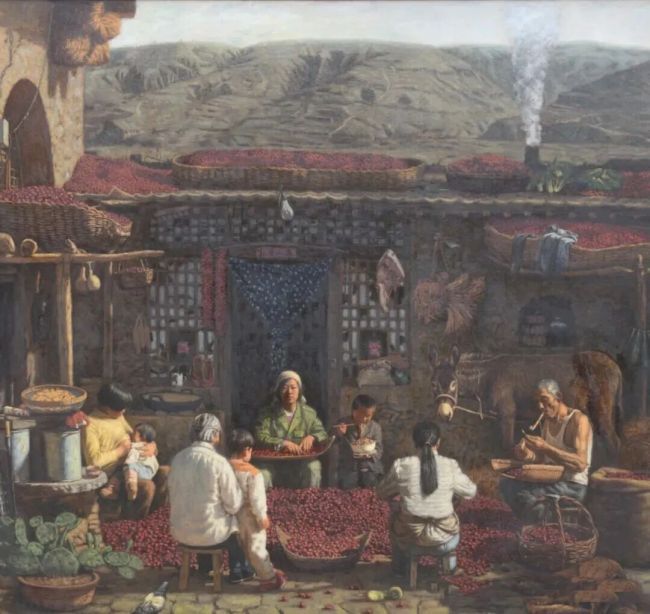窦鸿先生是从军旅沃土中成长起来的实力派画家,拥有扎实精湛的油画功底,他独辟蹊径,将西方古典油画的技法精髓,与中国乡土故事、民族文化深度交融,笔下的每一幅作品,都镌刻着浓郁的东方气韵与地域根魂。他数十年深耕大西北、扎根陕北乡土,将目光投向黄土高原的旷野、窑洞的烟火、百姓的日常,用画笔定格日出而作、日落而息的生活剪影,描摹西北人民的淳朴面庞、坚韧风骨与幸福期盼,让乡土、乡情、乡愁在画布上静静流淌。