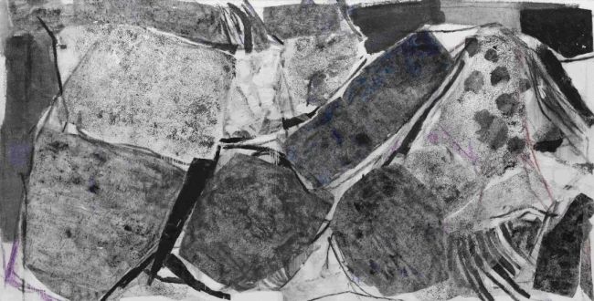 布面丙烯、油彩、宣纸拓印及拼贴等