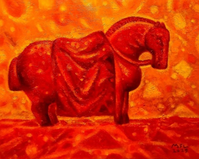 在当代油画艺术的纷繁图景中,马飞龙的创作,宛如一曲沉郁而明亮的西北谣,并非喧嚣地立于潮头呐喊,而是以近乎内省的姿态,深深植根于一片广袤的精神原乡。他的画布,不刻意言说传统或现代的二元辩题,而是将其悄然溶解,呈现为一种更为本真、更为个人化的生命体验与文化转译。观看他的油画整体,扑面而来的是一种可触可感的“质地”——这既是视觉肌理的厚重层叠,更是情感与文化的浑融浓度。他的艺术路径,是一条向内深掘、又向远敞开的漫漫长路。