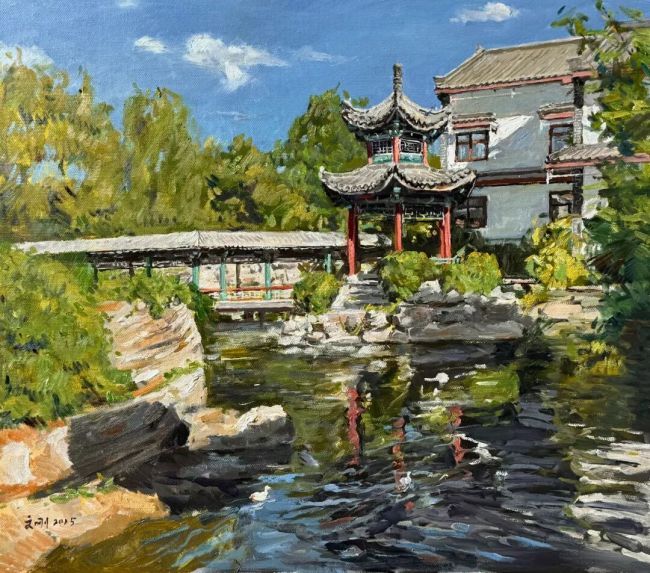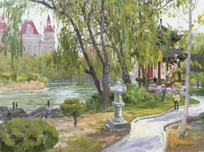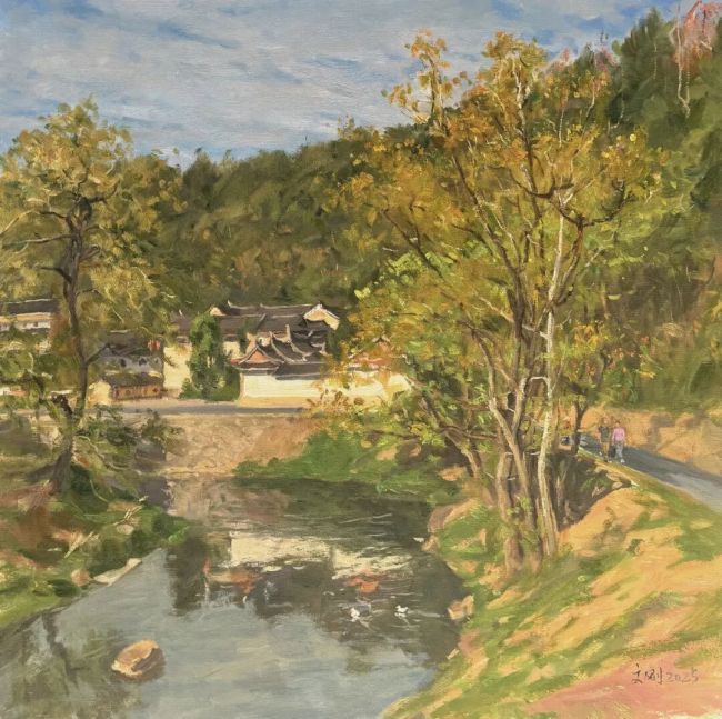 草木欣欣,山高水长,大自然和绘画艺术其实都是按照一个天道运行着,高山大河是雄浑的赋格。沉浸于万物造化中写生让我更多地受惠于自然的恩典,沐浴着阳光、雨露、风沙、寒雪,领略自然的性格和精神。在生活和自然中写生是一个画家应持之以恒的坚守,也是我喜欢的作画方式,每年我都要离开画室去往户外若干次写生,足迹遍布大江南北、长城内外、高原平湖,还有异域的欧美大陆。中国地域广阔,民族众多,南北、东西差异很大,人文景观也犹如万花筒般丰富多彩。感叹国家疆域如此宽广辽阔、民族如此多姿多彩,地理地貌是如此变化多端,面前的人和景都让你按捺不住地兴奋,的确,生活在中国的画家是幸运的!南方的风景自然条件好,气候温和植物丰沛,景色秀美;北方的风景光感强烈,反差大,景色多了一份苍劲、坚韧和硬朗;欧洲的景色我也很喜欢画,街巷更是充满了古色古香丰厚的人文气息,犹如徜徉在历史中。2025年,我先后去了山东、河北、敦煌、安徽、福建等地,画了一些风景,其中也有一些人物写生。
