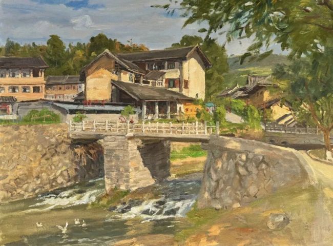 诚然,户外写生辛苦,但它对一个画家的艺术发展起着促进的作用,它可以直接锻炼画家的构图、画面组织能力和色彩的呈现分析,让感受信马由缰地在画面驰骋。在现场写生的过程中,促使作画者在油画本体语言上进行多方面探索,如色彩与造型的关系、具象与抽象的关系,技法上包括油的使用、底色与后涂色的关系、画面深入的问题等。格物致知,在写生中研究自然、强化个人对客观物象的感受力和表现力,研究具象写实里面的抽象结构,厘清造型原理,完善技术规正是建立个性绘画语言最佳途径,罗丹说过:“艺术就是情感。然而,如果没有几何、比例、色彩科学,没有灵敏的双手,即便最强烈的感情也会瘫痪。”写实油画的魅力就在于画家运用油画本体语言体现造型、表达感受,一幅写实油画作品如果失去这些特性就只剩下描摹性了,其价值等同于一幅照片,这也是写实油画不同于照片的根本所在,有价值的写生,是深度体验的在场与精准表达的在地的结合,让作品带着地域的温度与质感,成为创作者与那个地域的精神对话。