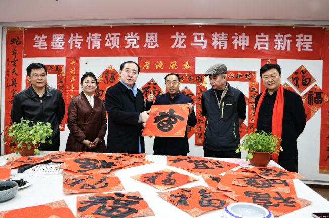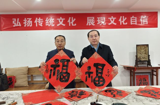 2月8日下午,北京奥宇集团内洋溢着浓厚的节日氛围。中国收藏家协会印章专业委员会“迎新春·送万福”书法公益活动走进奥宇集团,著名艺术家、中国收藏家协会印章专业委员会会长容铁率文化艺术家团队到北京奥宇集团,为一线员工现场书写春联、创作“福”字,送上诚挚的新春祝福。著名书法篆刻家、中国文促会国学艺术委员会主任马子恺,《中华英才》杂志社副社长周描坤等参加活动。奥宇集团董事长刘国恩携集团一线员工热情接待,并一同参与本次活动。