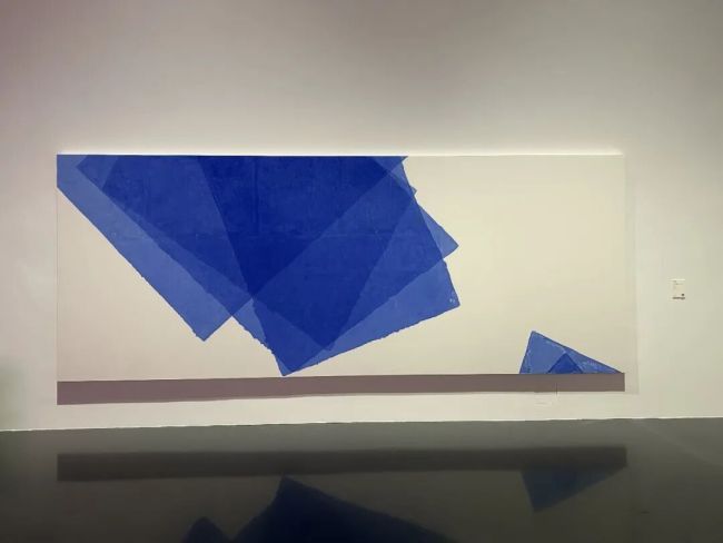 215×550cm的巨幅尺寸,让这两幅蓝色作品成为展厅中极具冲击力的视觉焦点。它们不再是挂在墙上的画,而是可以让人“走进去”的空间装置。