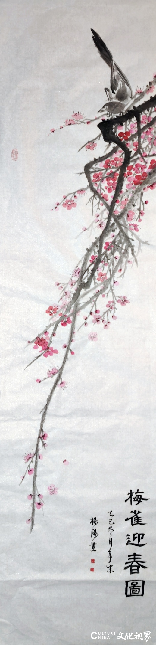 作品名称:《梅雀迎春图》中国画尺寸:34x136cm创作年代:2026年