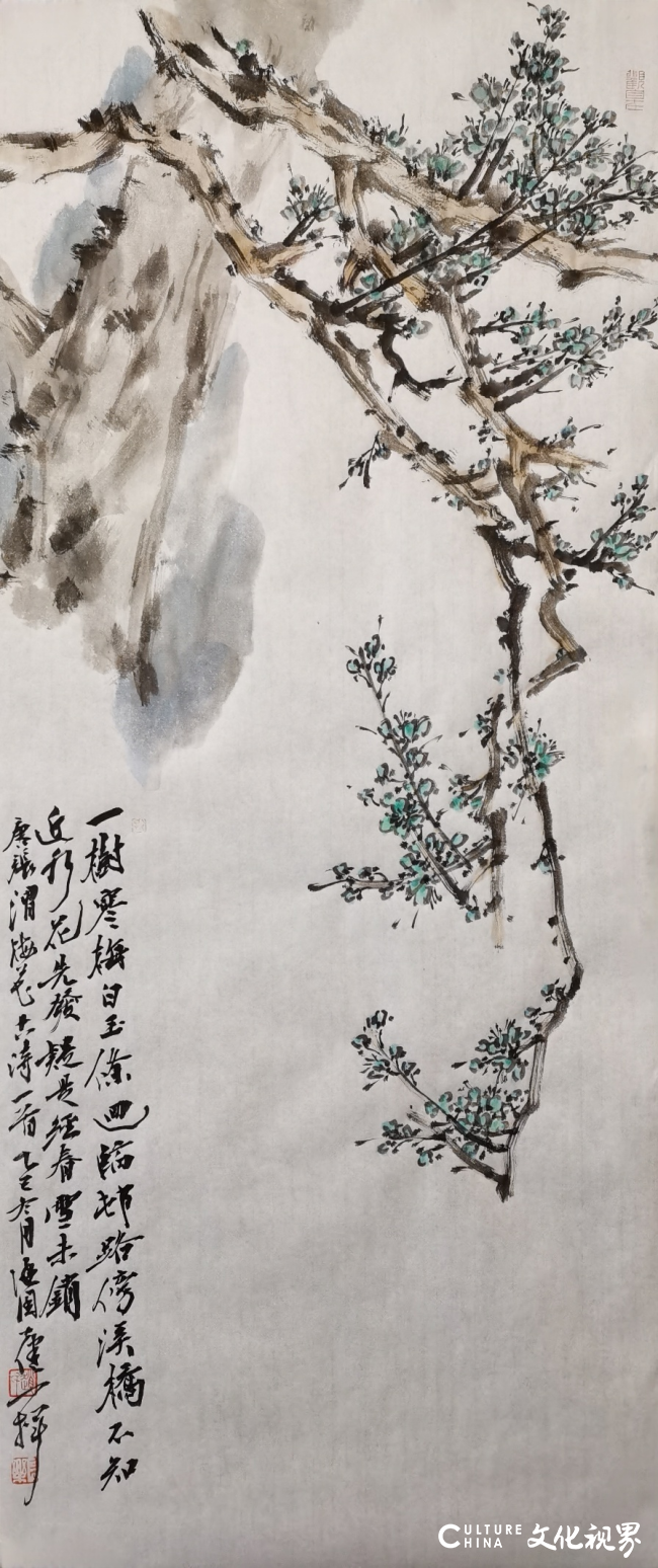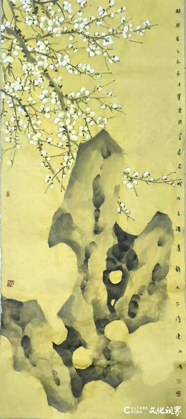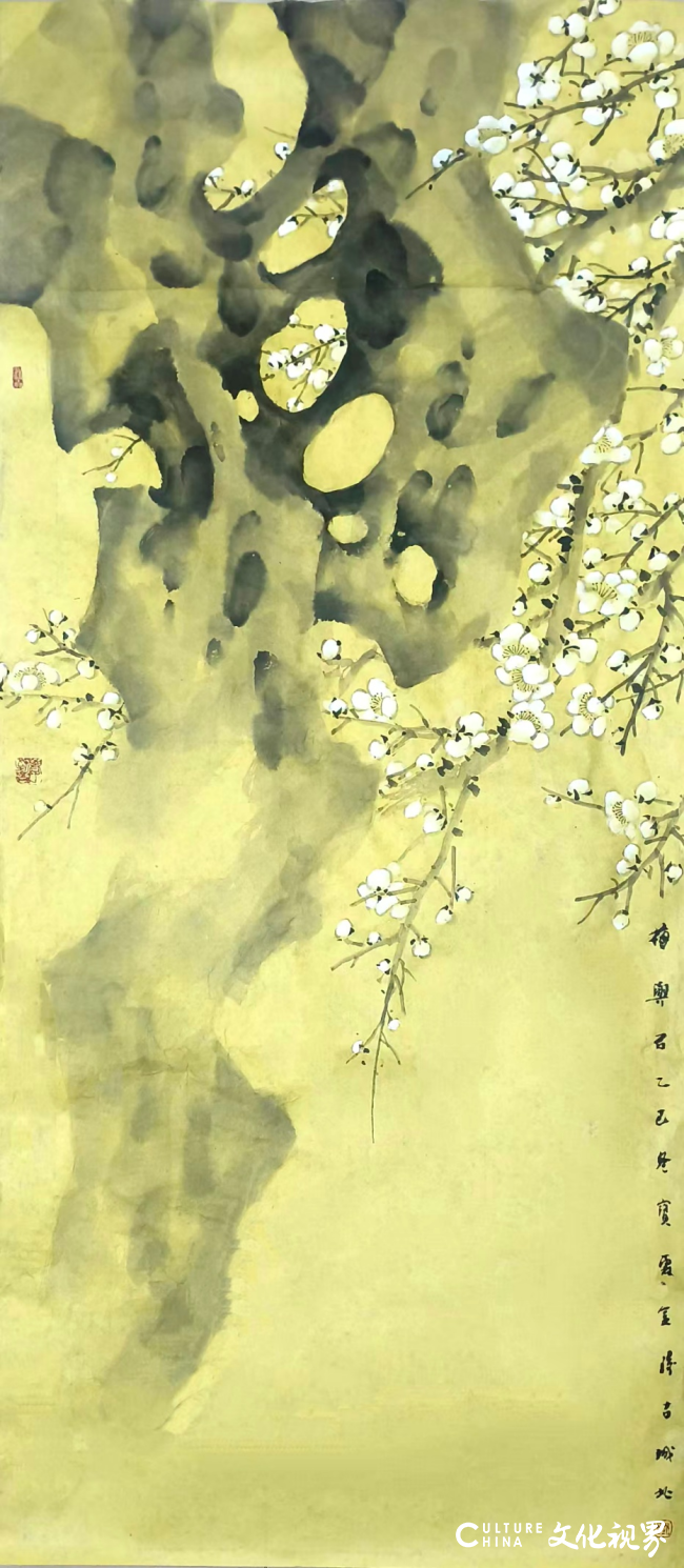 作品名称:《梅与石》之二,中国画尺寸:130x55创作年代:2025