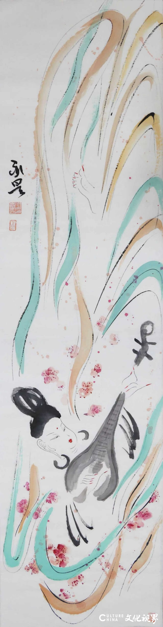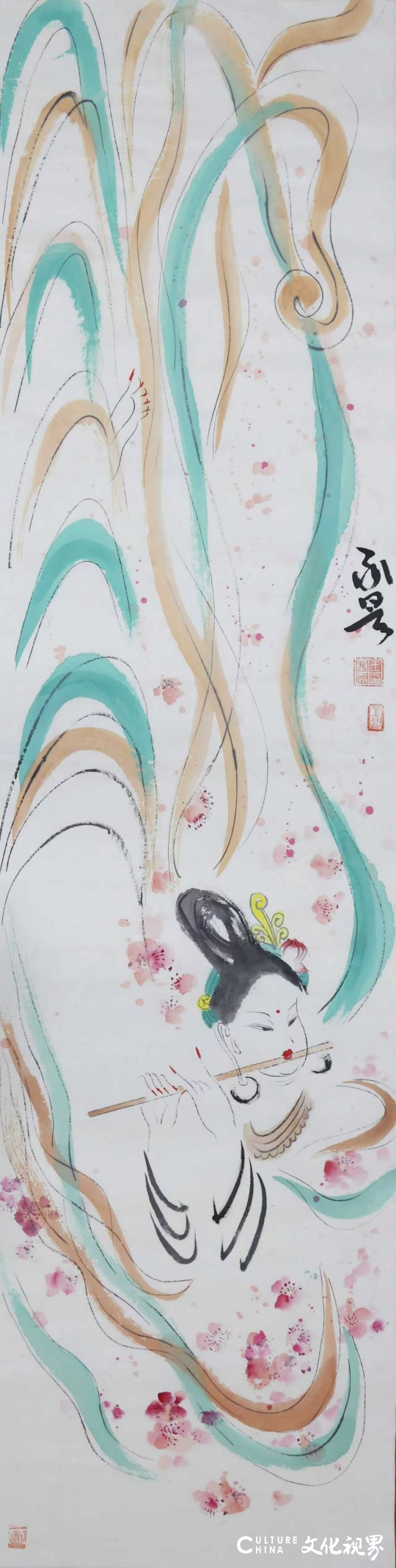 作品名称:《玉笛飞音梅花舞》中国画尺寸:136x35cm创作年代:2026年