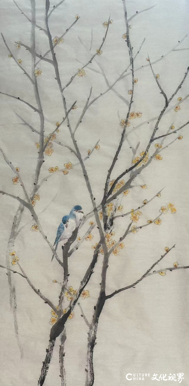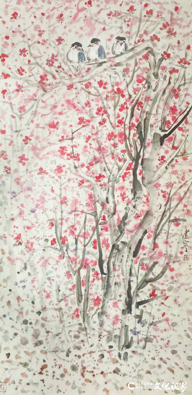“应邀在南京参加写梅画展,深感荣幸。我与这座六朝古都也算有缘,因恩师执教于南京,受教于梅庵,曾在南艺求学三载,又在东大深造一年。我画梅,师承长安画派,先生教我画梅之风骨,写花之心境。今回金陵展梅,愿以笔墨感念师恩,以咏梅不负此间岁月。”