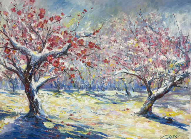 作品名称:《春山闻梅》油画尺寸:100x80cm创作年代:2026年