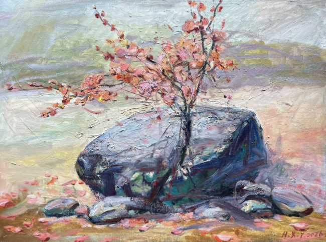 作品名称:《一树春金》油画尺寸:50x60cm创作年代:2026年