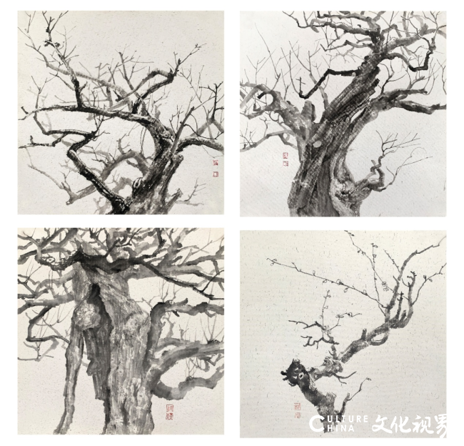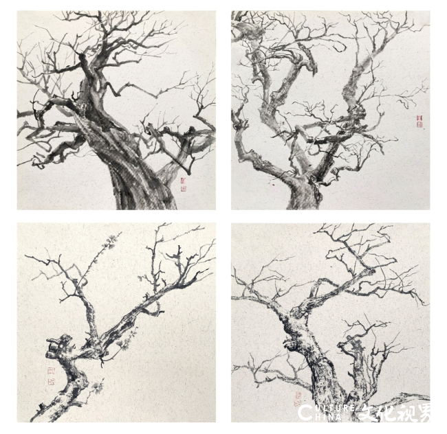 作品名称:《梅花树写生八景》中国画50x50cm创作年代:2022—2025年