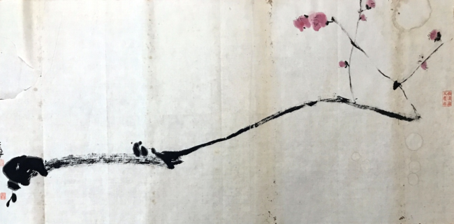 作品名称:《斗梅图》中国画尺寸:35 x 137 cm 创作年代:2026年