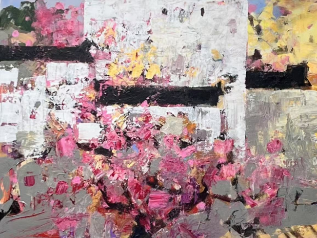作品名称:《粉墙花影》油画尺寸:80x70cm创作年代:2026年