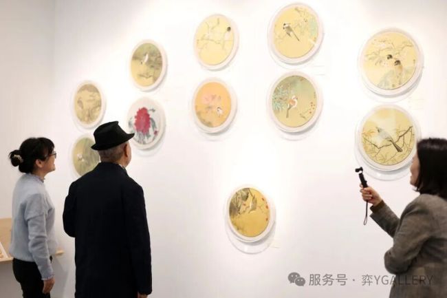 策展人黄丽平在阐释策展理念时表示,本次展览结合“时间主题”和“马年迎春”,故以“白驹过隙”为展览名称,设计上采用活泼的颜色作为主视觉,空间布局上,十二生肖则以“一马当先”开启马年迎春的节奏;“二十四节气”则是运用八卦鱼图中间流线,将作品依照日晷的痕迹分为两组,以春分、秋分为鱼眼,冬至为开始,夏至与冬至分为一对,以此类推两条流线铺展开二十四节气作品。此外,作品装裱突破中国画范式,打破固有格式和风格,营造简约明快的当代审美。希望透过这样的展陈逻辑与视觉语言,让观众从理论上的“传统”与“当代”的束缚中走出来,用直观的审美感受体会时间在笔墨中的流动与定格。