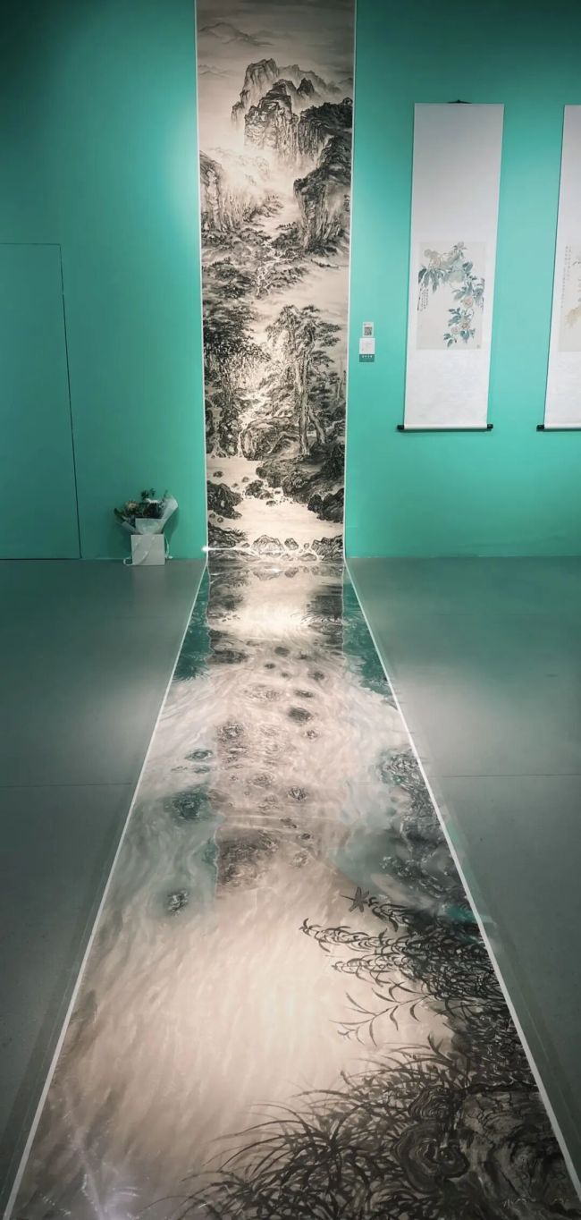 一位刚毕业的艺术家在屏幕上操控着水墨晕开的算法,观众通过VR设备“走入”画中。