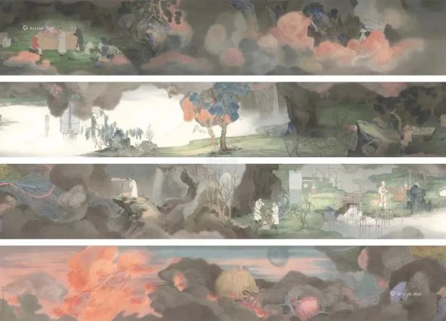 郝量 《云记》成交价 CNY 7,830,000 2012 | 彩墨 绢本41.5x1340 cm佳士得 上海亚洲与西方二十世纪及当代艺术2014.10.24
