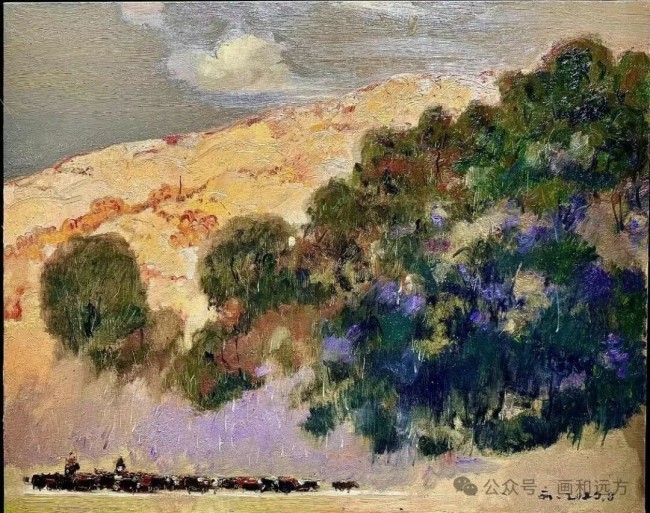色彩,是陈和西油画写生中最具感染力的元素,亦是其诗意意境的核心载体。他对色彩的运用,既不盲从西方写实体系的光影逻辑,也不刻意追求强烈的视觉冲击,而是以东方审美为内核,追求和谐、温润、含蓄的色彩意境。他善于从自然之中提炼最纯粹的色调,将纷繁复杂的自然色彩归纳、概括、升华,以简洁而富有层次的色彩关系,构建出宁静悠远的画面氛围。其色彩搭配柔和而典雅,彼此交融、相互映衬,没有突兀的对抗,没有张扬的对比,于平和之中见韵味,于淡雅之中显精神。这种色彩处理方式,弱化了刻意的空间塑造,强化了画面的整体意境与情感表达,让色彩本身成为诉说情感、传递诗意的语言,与中国传统艺术中重神韵、重意境的审美追求不谋而合。