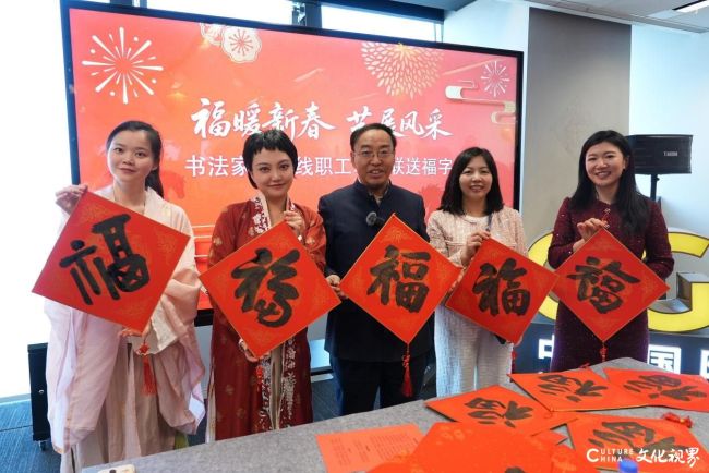 书法家们身着两宋时期的流行服饰,现场为百余位新闻工作者创作福字、春联和书法作品。大大的福字,时篆时隶、或行或楷,传递着满满的问候和浓浓的春意。“同心同行山河壮丽、共创共享大地丰饶”,“声画纷呈春意闹、荧屏璀璨喜气盈”,“马蹄得意驰千里、春色怡人荡九州”,一幅幅春联体现了对祖国的深情祝愿、对电视工作者的良好祝福。“骐骥驰骋、势不可挡”、“春回大地”、“马上有福”、写意的马,则表达了对丙午马年的美好期待。现场还设置了福字拓印等内容,为干部职工送上了别具一格的“福”印。